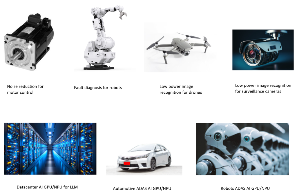 GPUs used in AI datacenters consume a huge amount of electric power. This is a worldwide problem that accelerates global warming. NPUs (Neural Processing Unit, LSIs specialized for AI) are being developed to reduce power consumption. However, power reduction of NPUs would be usually 1/3 ~ 1/5 of GPUs. This level power reduction won’t solve the problem. Floadia’s CiM achieves 1/1000 power and less than 1/10 cost of GPU. Floadia CiM technology would be the final solution for large power consumption of AI systems.